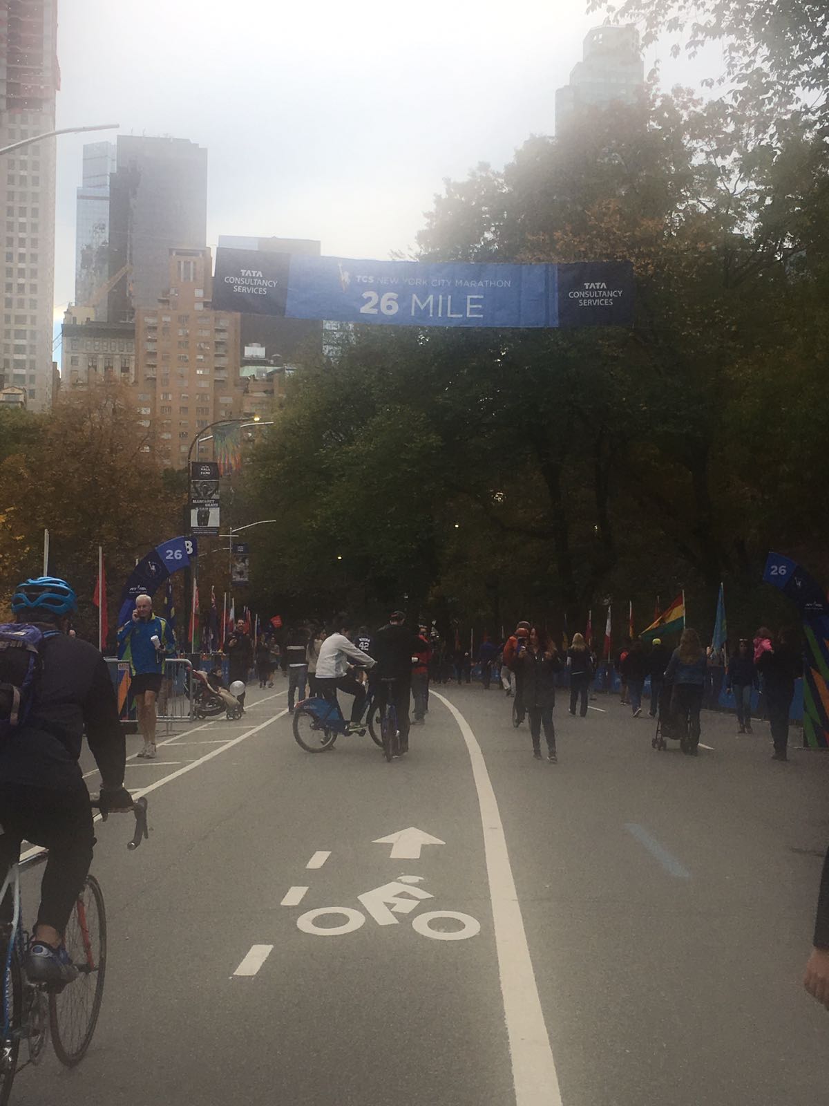 11月に行われたNYマラソンにて。マラソン初挑戦で、結果は4時間44分。練習で膝が痛くなり完走できないかと思っていたが、レース直前に走るフォームを教わり、そのおかげで思っていたより早いタイムで完走できた。写真はゴール付近で、歩いていた時に撮ったもの笑